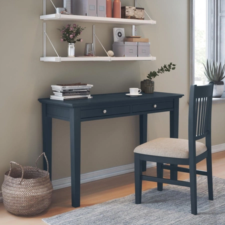 • Ciemnogranatowe plecy z pionowymi listewkami – geometryczne akcenty