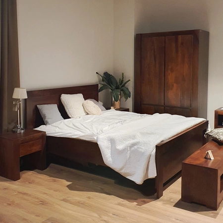 To solidne drewniane łóżko z litego drewna, stworzone z myślą o eleganckim relaksie. Już od pierwszych chwil poczujesz jego naturalne piękno, jakie święcą grube deski mango w ciepłym brązie. Wysoki zagłówek (100 cm) i solidna rama otulają Twoje wnętrze komfortem i spokojem. Łóżko z drewna mango o prostej formie doskonale wpasuje się zarówno w styl kolonialny, jak i nowoczesny minimalizm. Od teraz Twoja sypialnia zyska drewniane łóżko dwuosobowe, które łączy w sobie elegancję i trwałość.