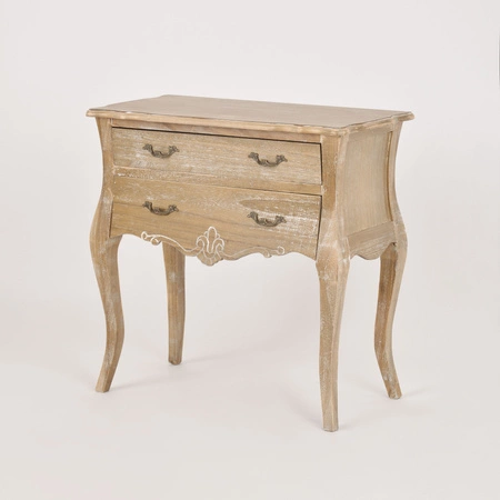 Ta mała bielona komoda rustykalna to idealne połączenie funkcjonalności, uroku stylu prowansalskiego i jakości naturalnego drewna. Wykonana ze szczotkowanego drewna paulowni, z delikatnymi przetarciami i ręcznie malowaną powierzchnią, wprowadzi do wnętrza sielski klimat południowej Francji.