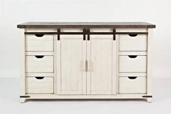 Komoda Rustykalna w kremowym kolorze z przeszklonymi drzwiami