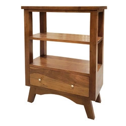 Konsola z litej akacji 70 cm – jasny orzech z szufladą i półką