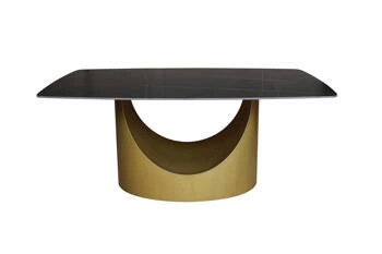Nowoczesny stół ze złotymi nogami i białym blatem marmurowym 160 cm