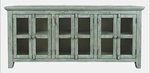 Komoda orzechowa z turkusowym frontem i złotymi akcentami