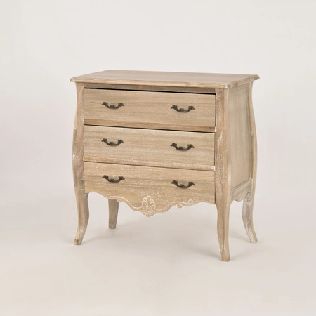 Ta mała drewniana komoda z szufladami to nie tylko praktyczne rozwiązanie do przechowywania, ale także elegancki element dekoracyjny, który doda uroku Twojemu wnętrzu. Jej zgrabny i elegancki design sprawia, że doskonale wpisuje się w różnorodne style wnętrzarskie, zwłaszcza w styl prowansalski. Jasnobrązowy odcień komody, przecierany bielą, tworzy harmonijną i przytulną atmosferę w pomieszczeniu.