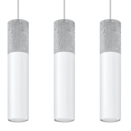 • Źródło światła: GU10, 3x40W, 3x12W LED, 50-60Hz, ~220-230V, IP20, klasa ochronności IŹródło światła nie jest w komplecie.Wymiary: 45/6/90 cmWymiary klosza: 6/30 cmMateriał: stal, betonKolor: biały, szary