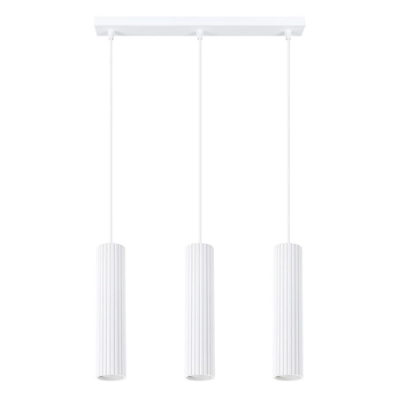 - Źródło światła: GU10, 3x max 10W LED, ~230V, 50Hz, IP20, klasa ochronności IŹródło światła nie jest w komplecie.Wymiary: 45/6,5/98 cmWymiary klosza: 6,5/30 cmMateriał: aluminiumKolor: biały