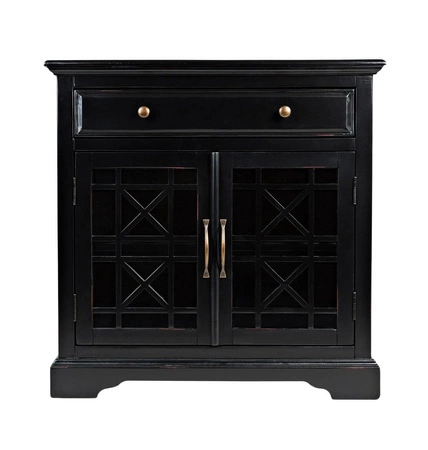- Czarna komoda prowansalska drewniana o szerokości 82 cm z szufladą i szafką.