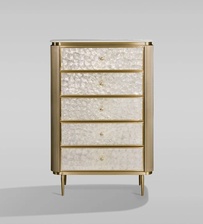 MDF, naturalna muszla morska, stal nierdzewna, blat: marmur syntetyczny