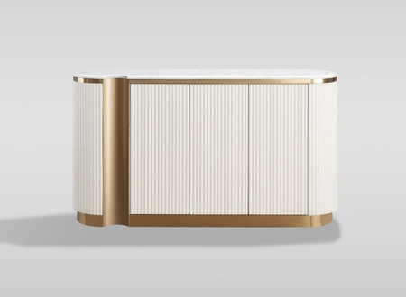 Ryflowane drewno;marmur syntetyczny;system push to open;regulowana wysokość półek;system soft close;regulacja wysokości ślizgaczy meblowych podłogowych;blat w połysku