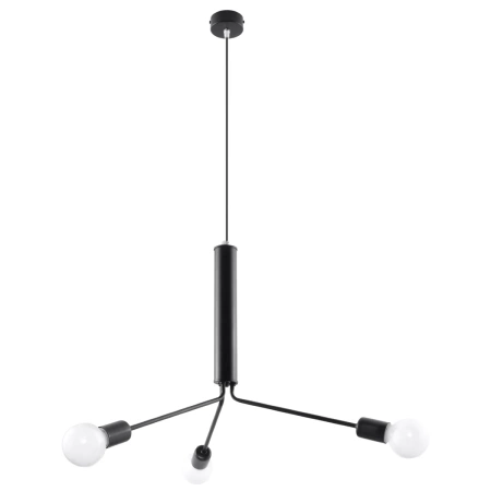 • Źródło światła: E27, 3x60W, 3x15W LED, 50-60Hz, ~220-230V, IP20, klasa ochronności IŹródło światła nie jest w komplecie.Wymiary: 75/75/100 cmMateriał: stal Kolor: czarny