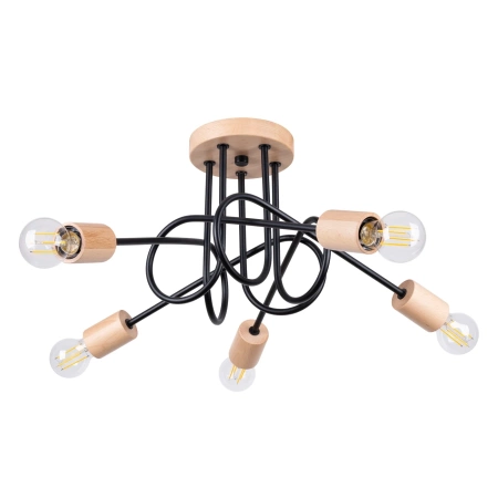 - Źródło światła: E27, 5x max 15W LED, ~230V, 50Hz, IP20, klasa ochronności IIŹródło światła nie jest w komplecie.Wymiary: 15/61/26 cmMateriał: stalKolor: czarny, natrualne drewno