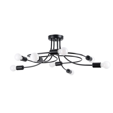 - Źródło światła: E27, 8x max 15 W LED, 50Hz, ~230V, IP20, klasa ochronności IŹródło światła nie jest w komplecie.Wymiary: 58/58/28 cmMateriał: stalKolor: czarny