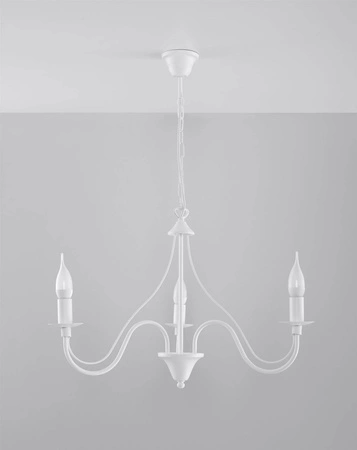 • Źródło światła: E14, 3x40W, 3x12W LED, 50-60Hz, ~220-230V, IP20, klasa ochronności IŹródło światła nie jest w komplecie.Wymiary: 60/60/80 cmMateriał: stalKolor: bialy