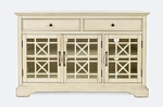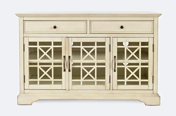 Komoda z drewna, dwie szuflady, 3- przeszklone drzwi - kremowa, 127 cm